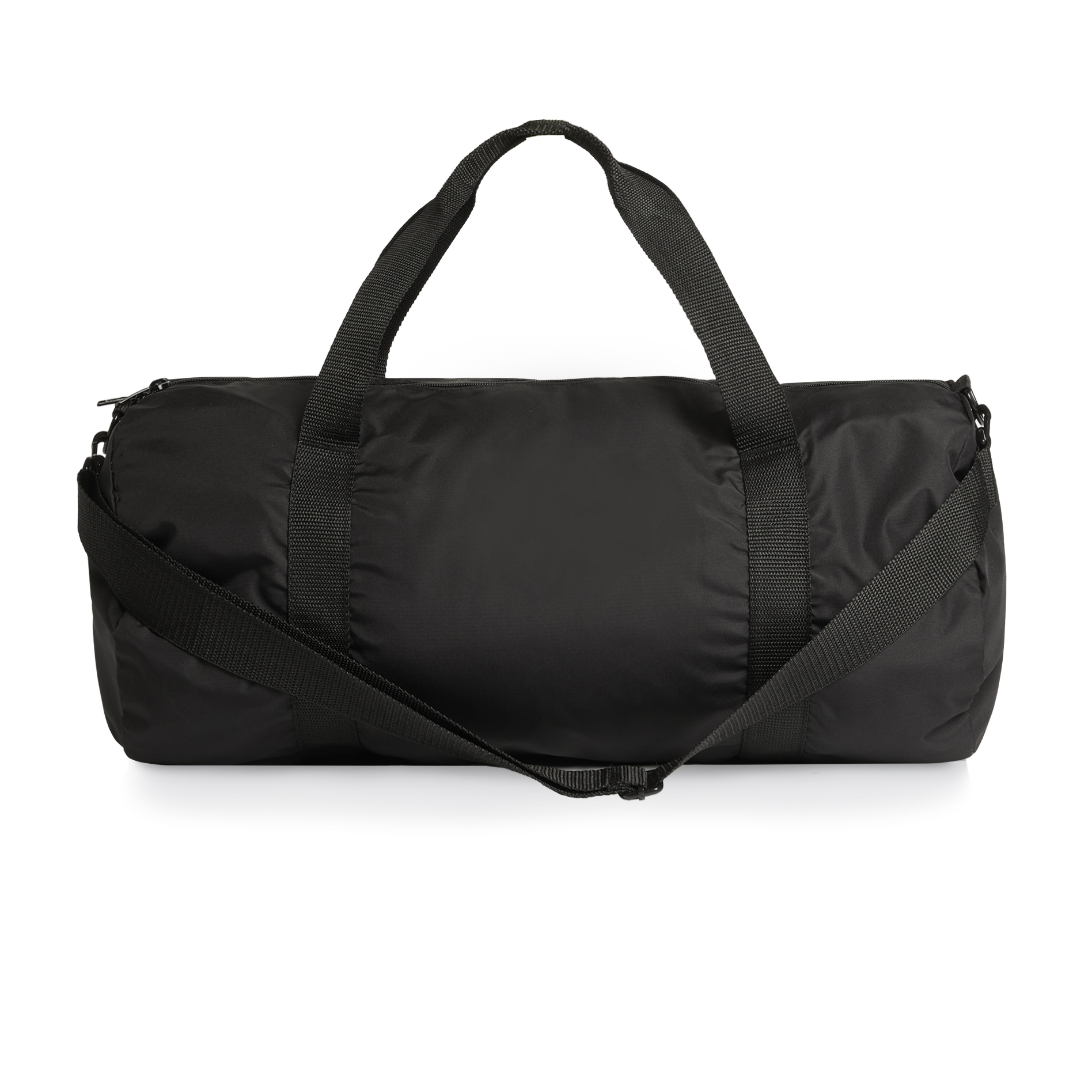 Cylinder duffel, large main compartment, YKK tonal nylon zip, reinforced handles, adjustable shoulder strap, YKK zip